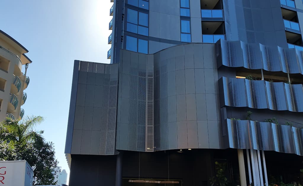 Vulture Street | PerfArt Project Project Completion: 2018 September 30, 2020 Located at South Brisbane, the St Julien apartments on Vulture St now boasts 800m2 of custom perforated façade panels. The screens were manufactured from 3mm 5005 aluminium and were folded in a design to suit the substructure. The screens required a custom fabricated substructure, which was designed and proposed to the builder (PBS Building) & architect (Rothelowan) by Stoddart and fabricated after both architectural & engineering aspects were reviewed and approved. The panels were powder coated using Dulux Duratec Electro Medium Bronze & Monument Satin. Both the substructure and the perforated panels were fabricated and installed by Stoddart. The job was delivered on time and within budget with positive feedback from clients. 1 / 4 Image 1 2 / 4 Image 2 3 / 4 Image 3 4 / 4 Image 4 ❮ ❯