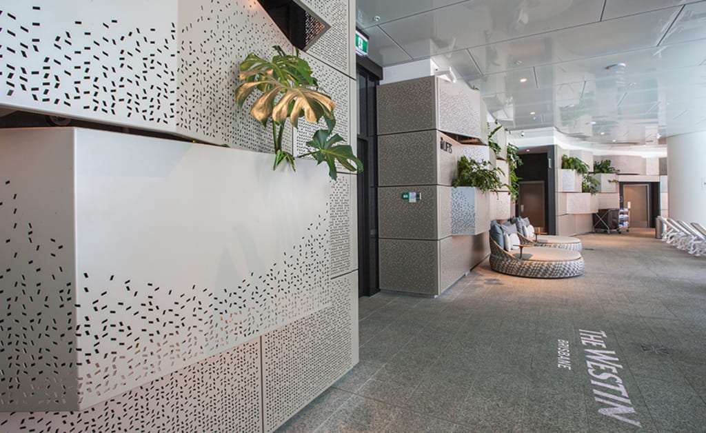 Westin Hotel | PerfArt Project Project Completion: 2019 October 1, 2020 The perforated Green Wall screens located on the pool level at The Westin Brisbane, is a result of Stoddart’s Architectural project team. Stoddart worked closely with client Watpac, design architect Woods Bagot & Form Landscape Architecture, to create a unique wall cladding system incorporating a bespoke perforated pattern. Originally specified as a laser cut pattern, Stoddart used their initiative and had custom punches manufactured so that the panels could be produced in our turret punch machines. Stoddart supplied & installed both the substructure and the panels. The finished project has gained positive feedback, from both the hotel and through marketing campaigns run early this year. This pattern has now become a standard in the Stoddart PerfArt® pattern library. This project is a fantastic example of how Stoddart will go the extra mile to help our clients and designers produce products that our competitors shy away from. 1 / 4 Image 1 2 / 4 Image 2 3 / 4 Image 3 4 / 4 Image 4 ❮ ❯