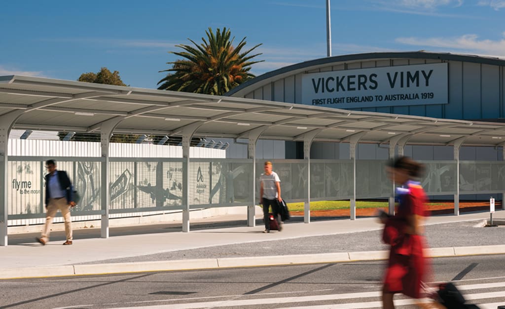 Adelaide Airport | Stoddart Infrastructure Project Project Completion: 2018 October 6, 2020 Stoddart Infrastructure were commissioned by Adelaide Airport to design, fabricate, and install several walkways as part of the 2019 centenary celebrations of the first flight from England to Australia in 1919. A two-stage project, the first of which has been completed and consists of two cantilevered walkways, facilitates patron transfer between the long term car park and terminal building via the Vimy Vickers Memorial – the focus of the celebrations. The custom walkways are based on the Stoddart Infrastructure Decco walkway; characterized by its large-span, curved cantilever roof design, and modular bolt-together assembly methodology. For this application the frame was altered to give a more individual aesthetic to the structure and full-length guttering included, as well as the integration of custom perforated picture mesh panels with travel-themed motifs between the posts, providing fantastic visual interest to the canopies. Additionally, patron-focused LED courtesy lighting was added for patron comfort. Constructed out of mild steel, and then hot-dip galvanised and powder coated, these walkways have been fully designed and engineered to suit their location. Stoddart also completed the civil and electrical design as part of the scope of works, and project managed every stage of the job including civil works, shelter installation, and project handover. These walkways will deftly assist in the commemoration of one of Australia’s iconic aviation achievements, and Stoddart are proud to be a part of not only these celebrations, but our continued reputation and involvement in providing high quality, highly functional, but also highly aesthetic transport infrastructure at all of Australia’s major airports. 1 / 4 Image 1 2 / 4 Image 2 3 / 4 Image 3 4 / 4 Image 4 ❮ ❯